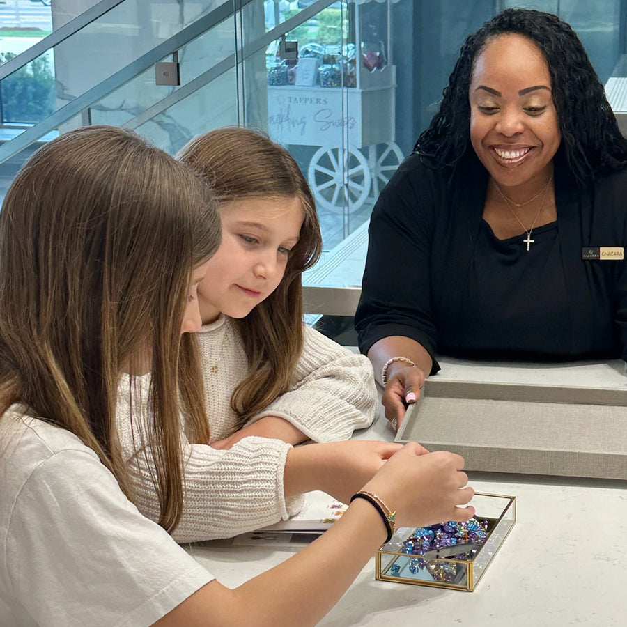 Finding treasure has never been so much fun! We invite your child to sift through our dazzling assortment of gemstones—smooth ovals, sparkling rounds, and vibrant baguettes—examining each for its unique color and shape. Prompting them to hold a few favorites against their palm, they can compare sizes and imagine which stone will catch their mom’s eye. This hands-on discovery makes choosing that perfect gem an exciting adventure.